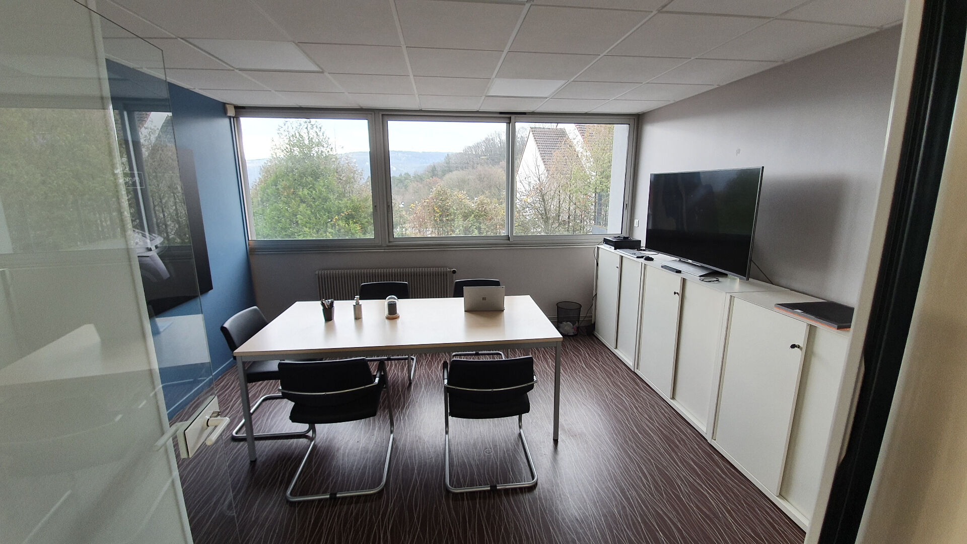 Il est composé d’un hall d’entrée, 6 bureaux, salle d’eau, sanitaires, un espace de repas et d’un parking extérieur (10 places).