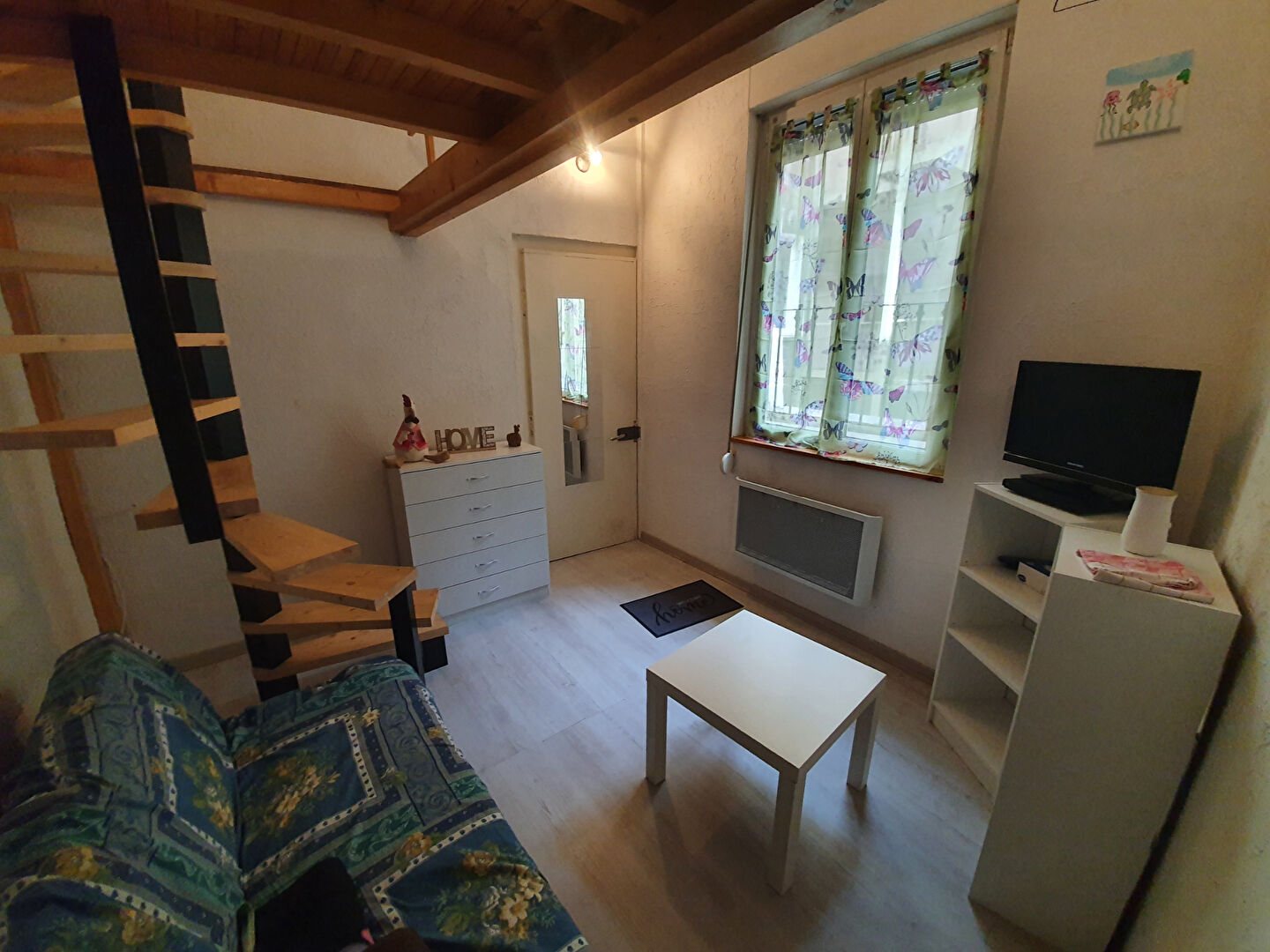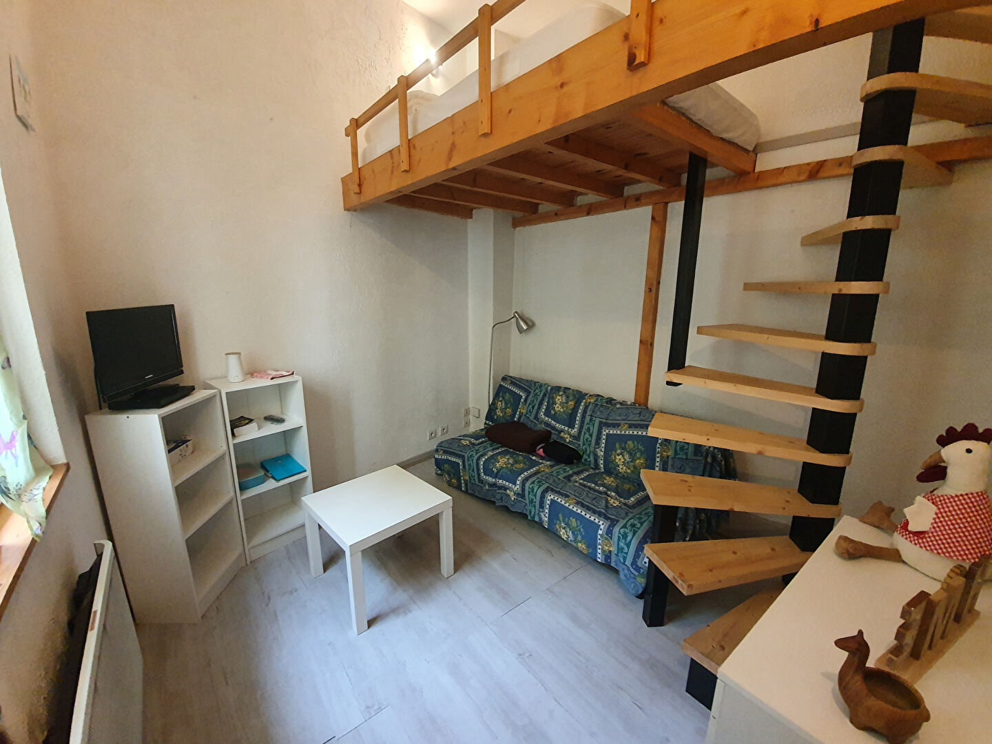 En exclusivité, au centre ville de Besançon, studio atypique de 15 m² (Loi Carrez) 20 m² au global, en duplex. Entièrement meublé, il se compose d’une pièce de vie, d’un espace nuit en mezzanine, une cuisine et une salle d’eau avec WC.